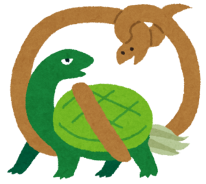 玄武は北方を守護する水神であり、「玄」は黒色を意味します。